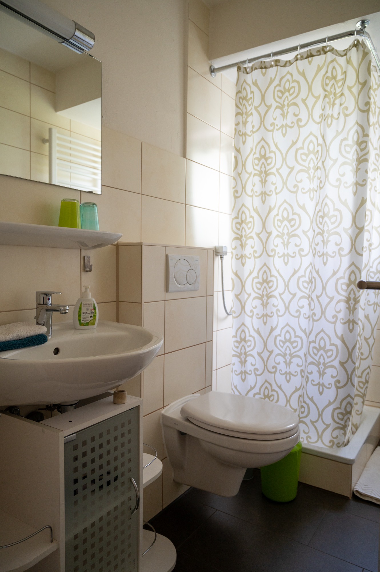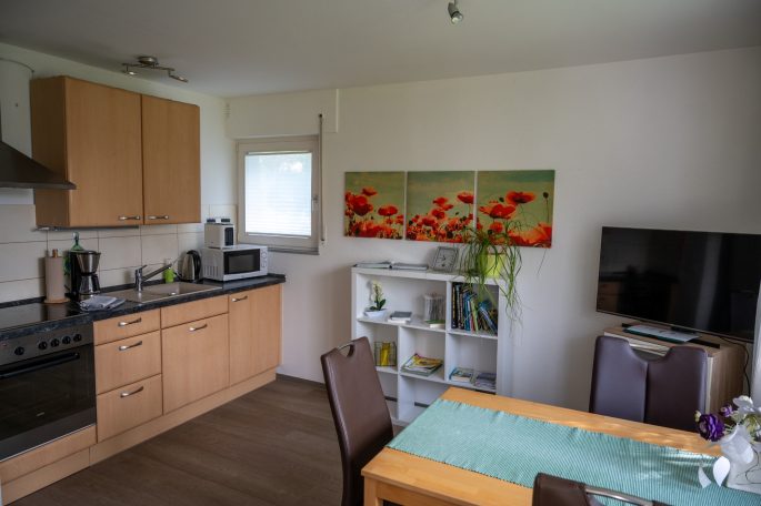 In unserem Haus vermieten wir unsere im Erdgeschoss liegende Einliegerwohnung, die ruhige Lage im Nürtinger Stadtteil Oberensingen wird ihnen gefallen. Auf rund 38 m² verfügen Sie über ein Wohnzimmer mit Küchenzeile (voll ausgestattet, u.a. Herd mit Backofen, Kühlschrank, Kaffeemaschine, Wasserkocher, Microwelle, Toaster), Sitzplatz und (Schlaf-)Sofa, ein separates Schlafzimmer mit Doppelbett sowie ein Bad mit Dusche, Waschbecken und WC. Bettwäsche und Handtücher stellen wir Ihnen gerne.